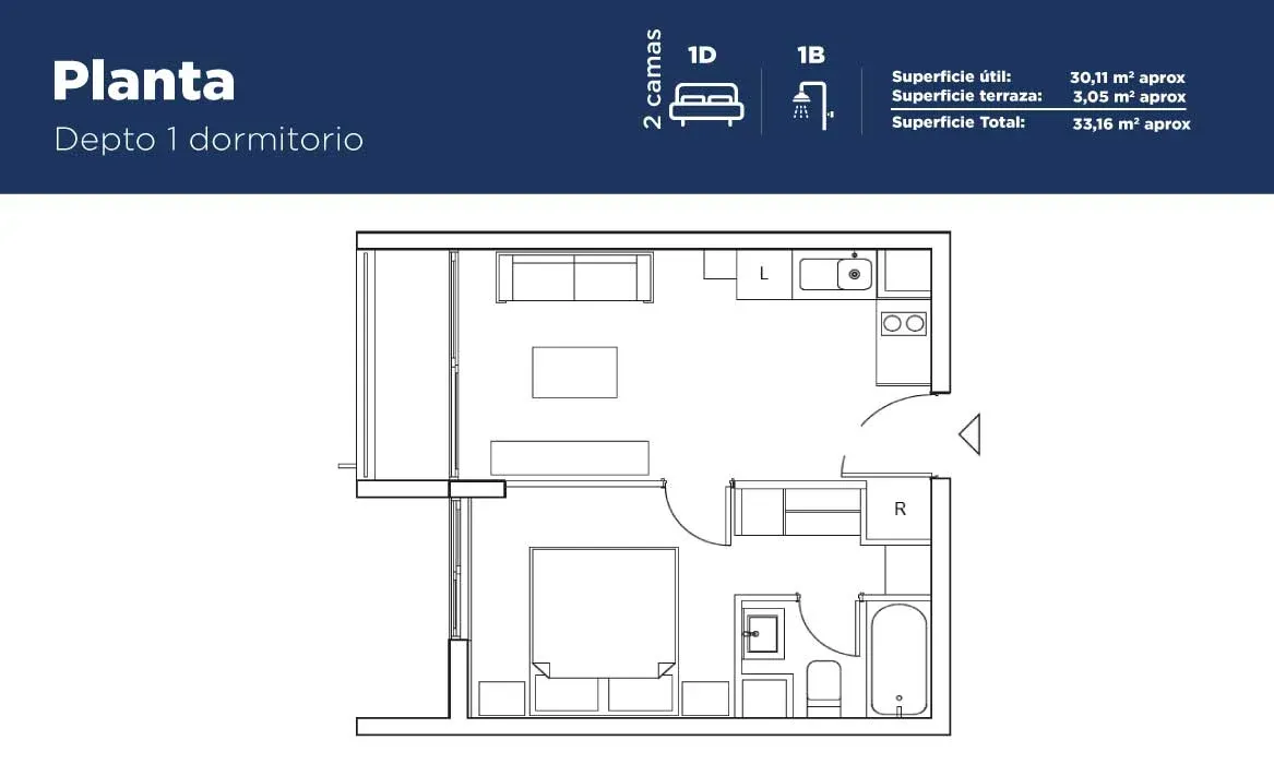Unidades de 1 y 2 dormitorios, con distribución inteligente y terminaciones de calidad.